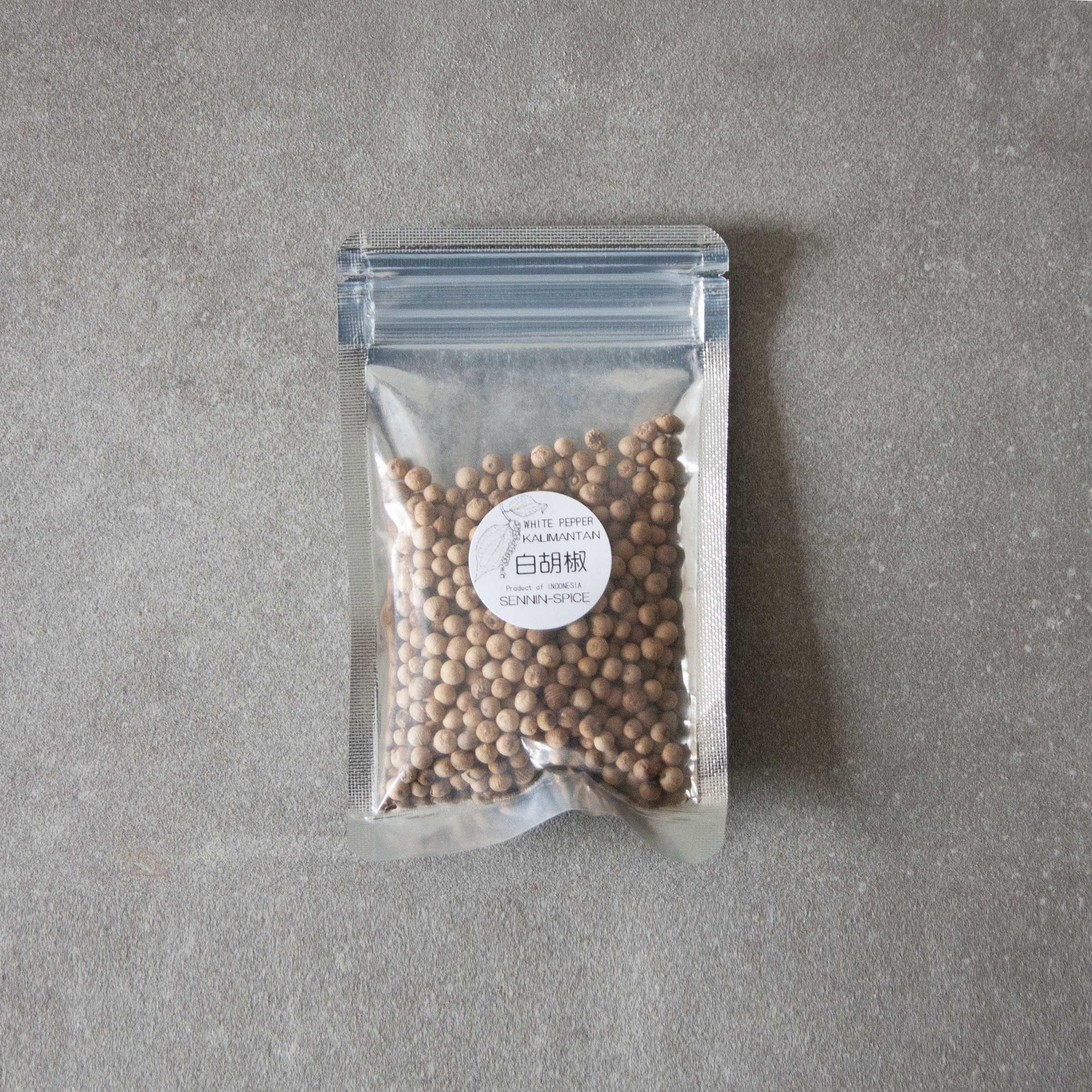 ファンも多い仙人スパイスが作る、インドネシア・カリマンタン産のホワイトペッパーです。湧き水が土を育む土地で育ったホワイトペッパーをドライの状態に加工しています。ミルで挽けば、胡椒の芳醇な香りに包まれます。白こしょうは水に一定期間浸して、外皮を取り除き中身の粒だけがコショウとなります。この香りを生かすため、加工は出来るだけシンプルに仕上げられています。