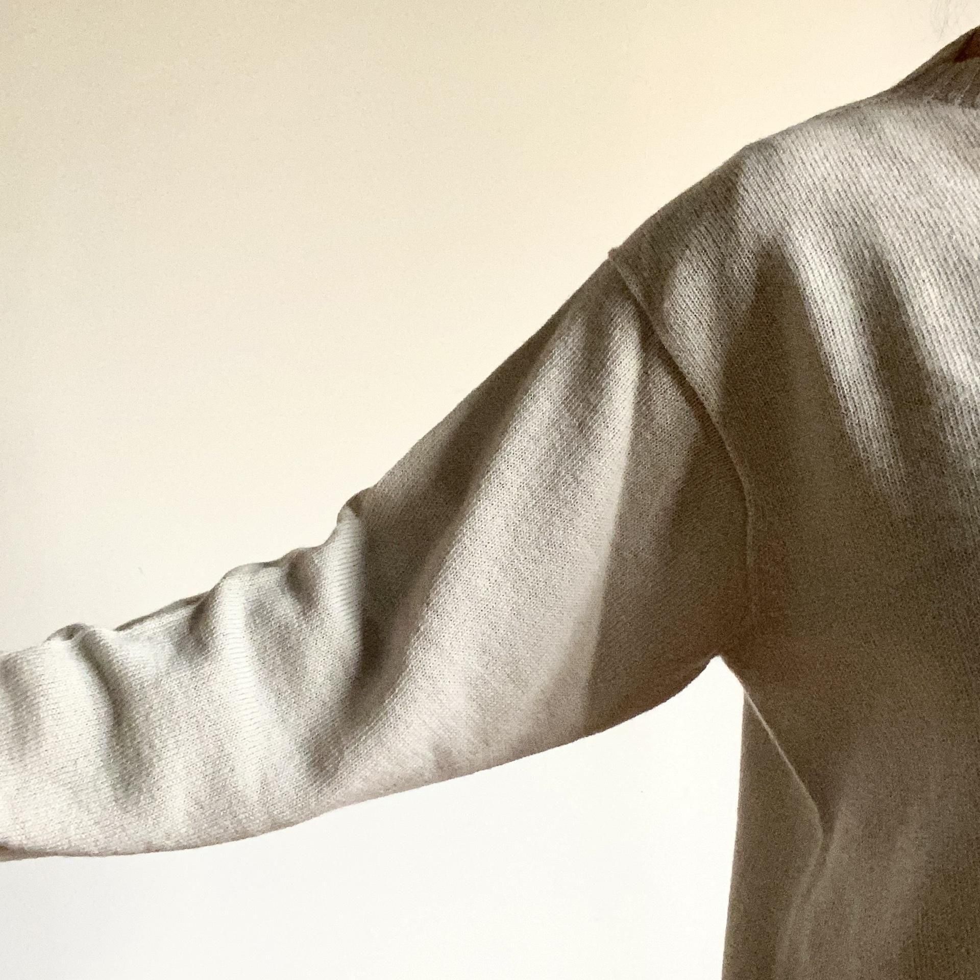 8ゲージのざっくり編みに改良されたユニセックスサイズのウールニットは、ちくちくしない心地よさはそのままに、ふわっと軽い着心地のニットに仕上がりました。