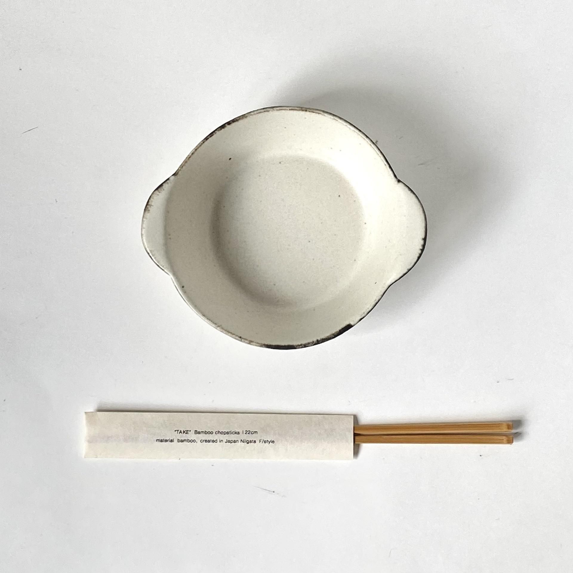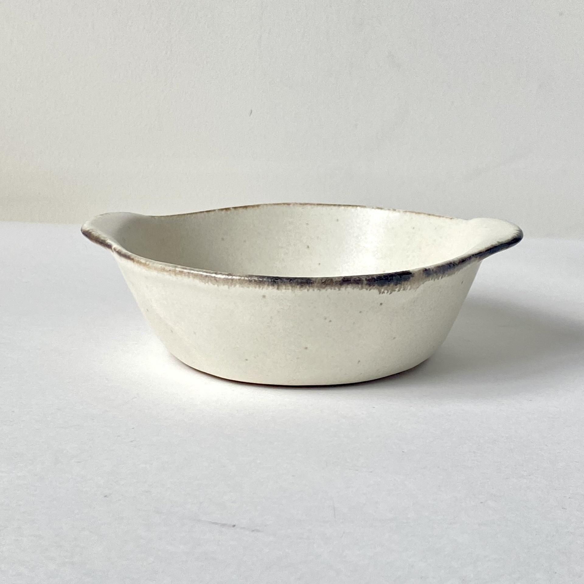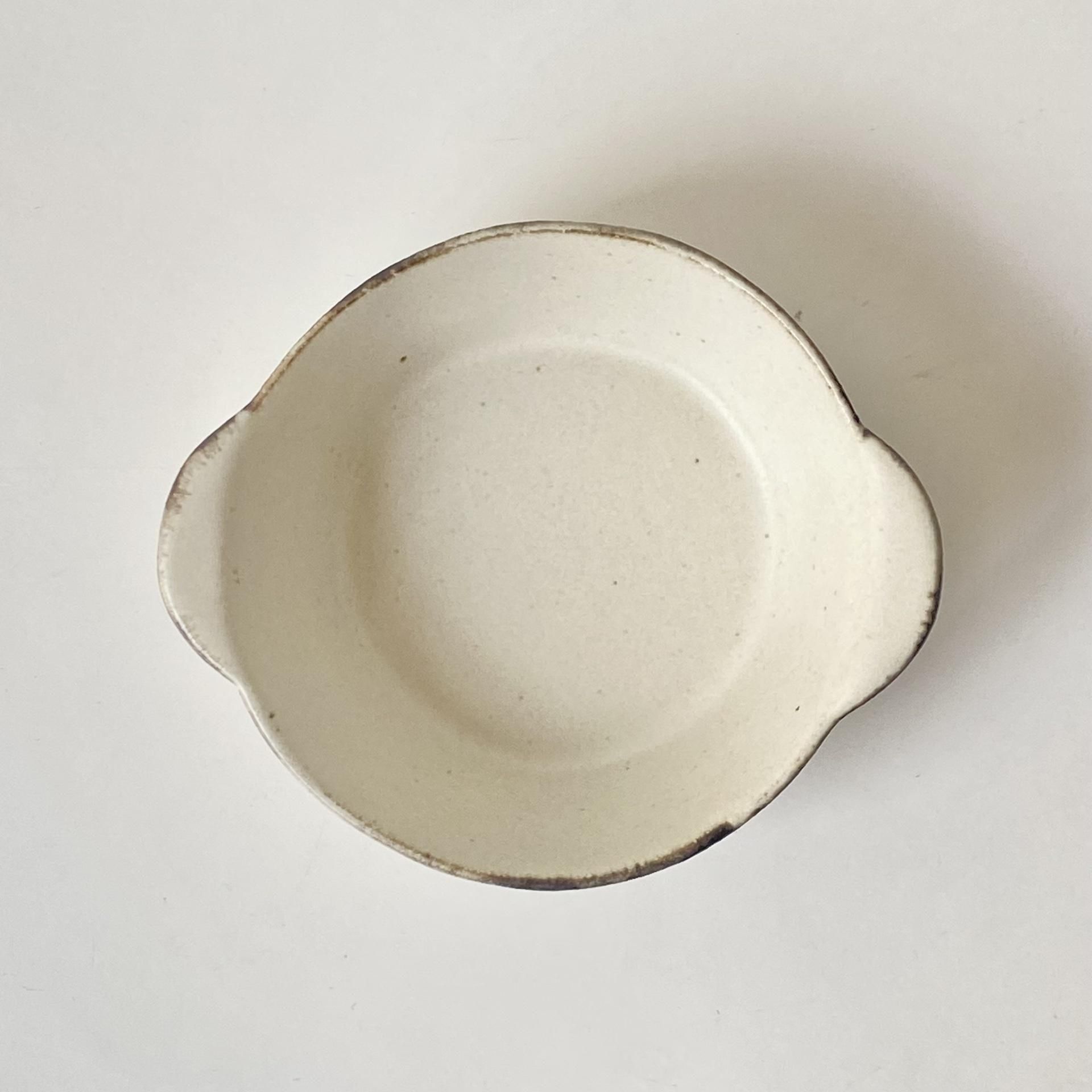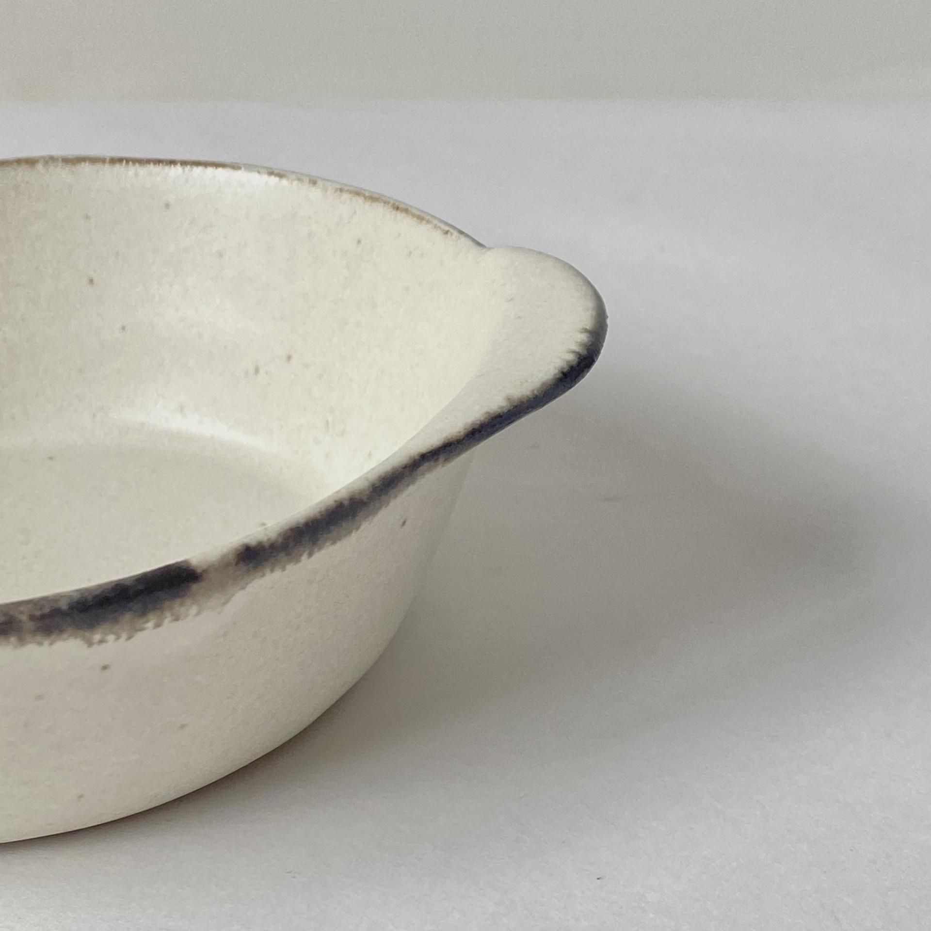 両側に耳のような小さな取手部分がついた小さめの鉢。