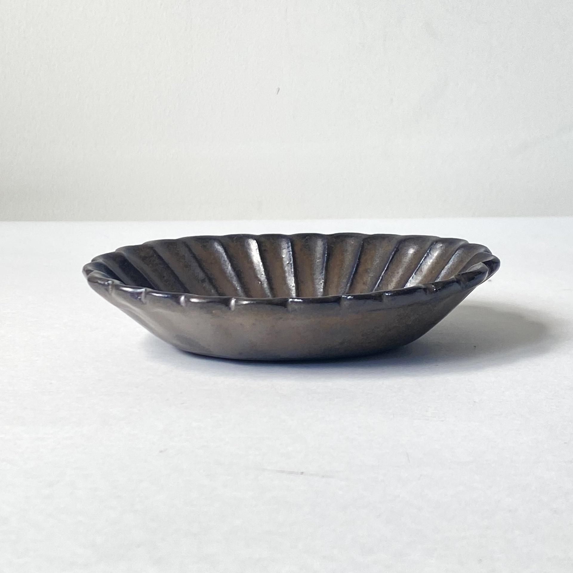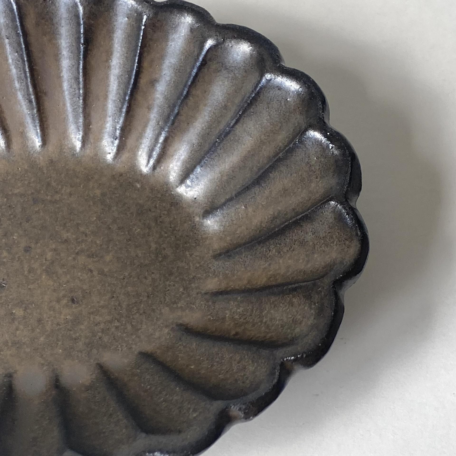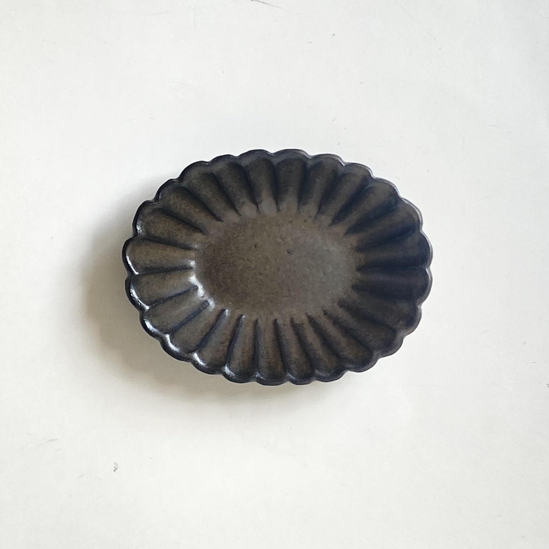 楕円方に開いた花の小鉢は、花びら部分のリムが印象的。