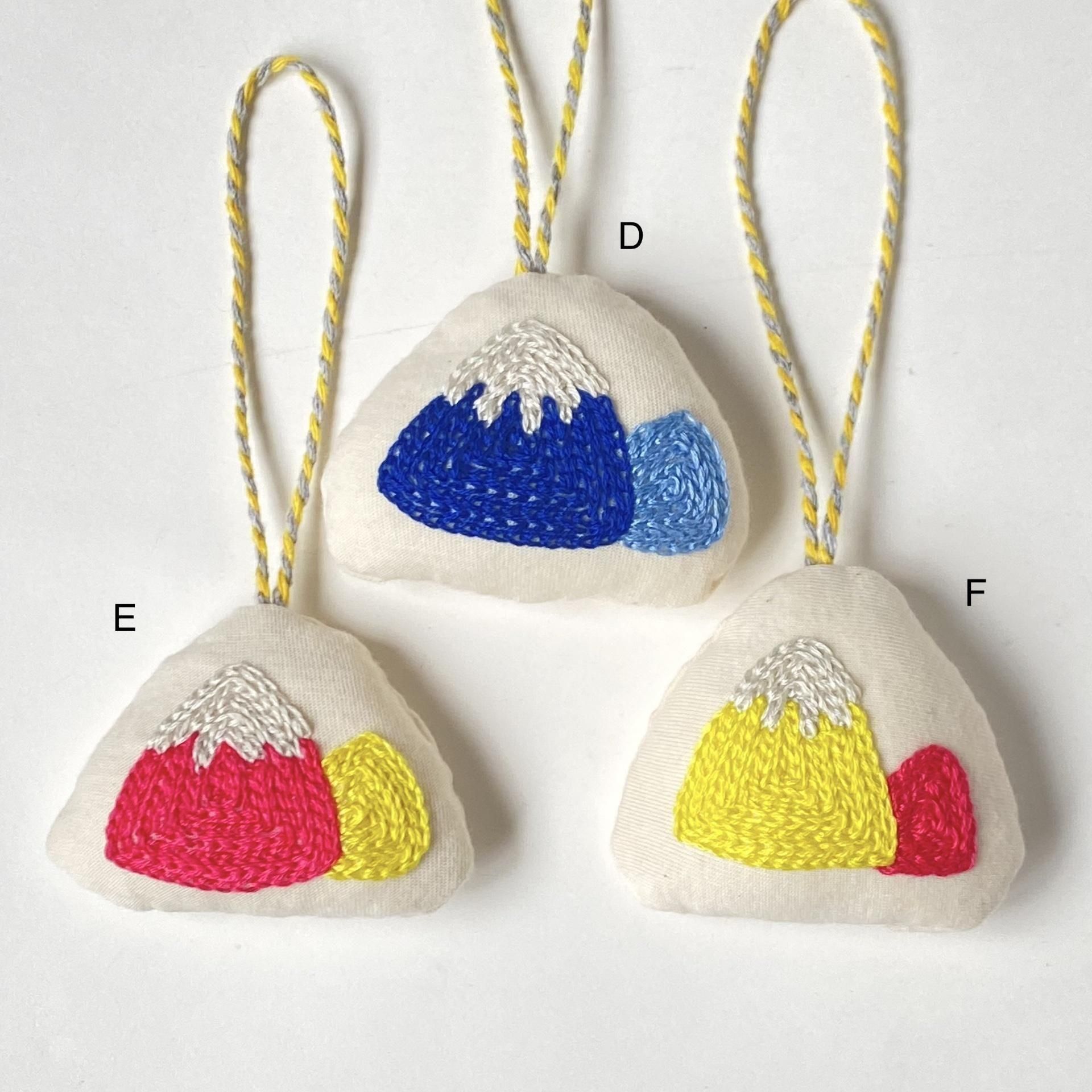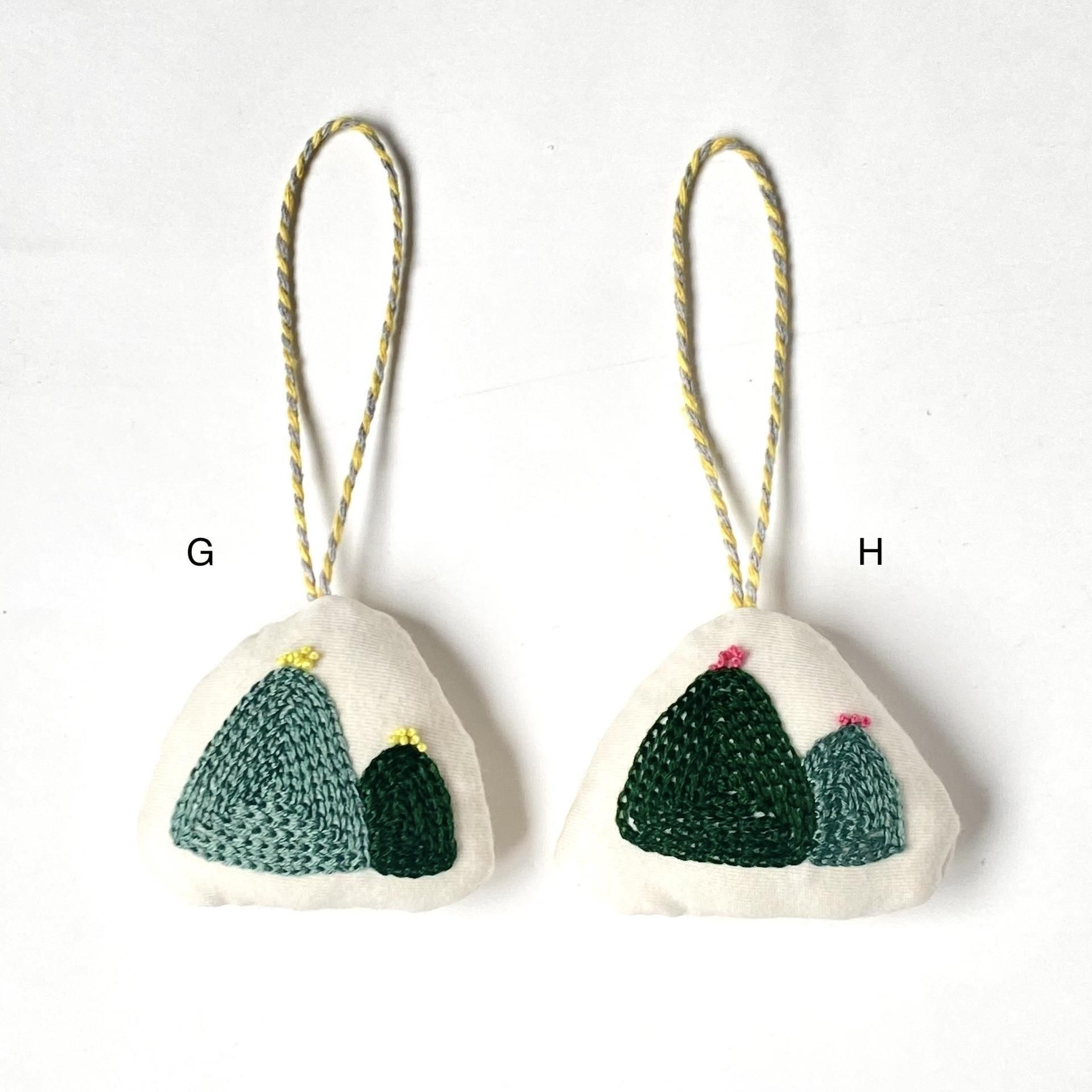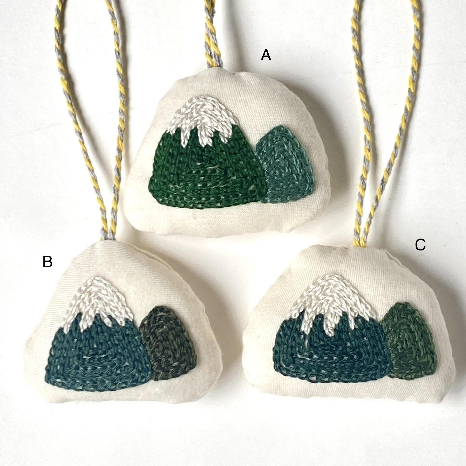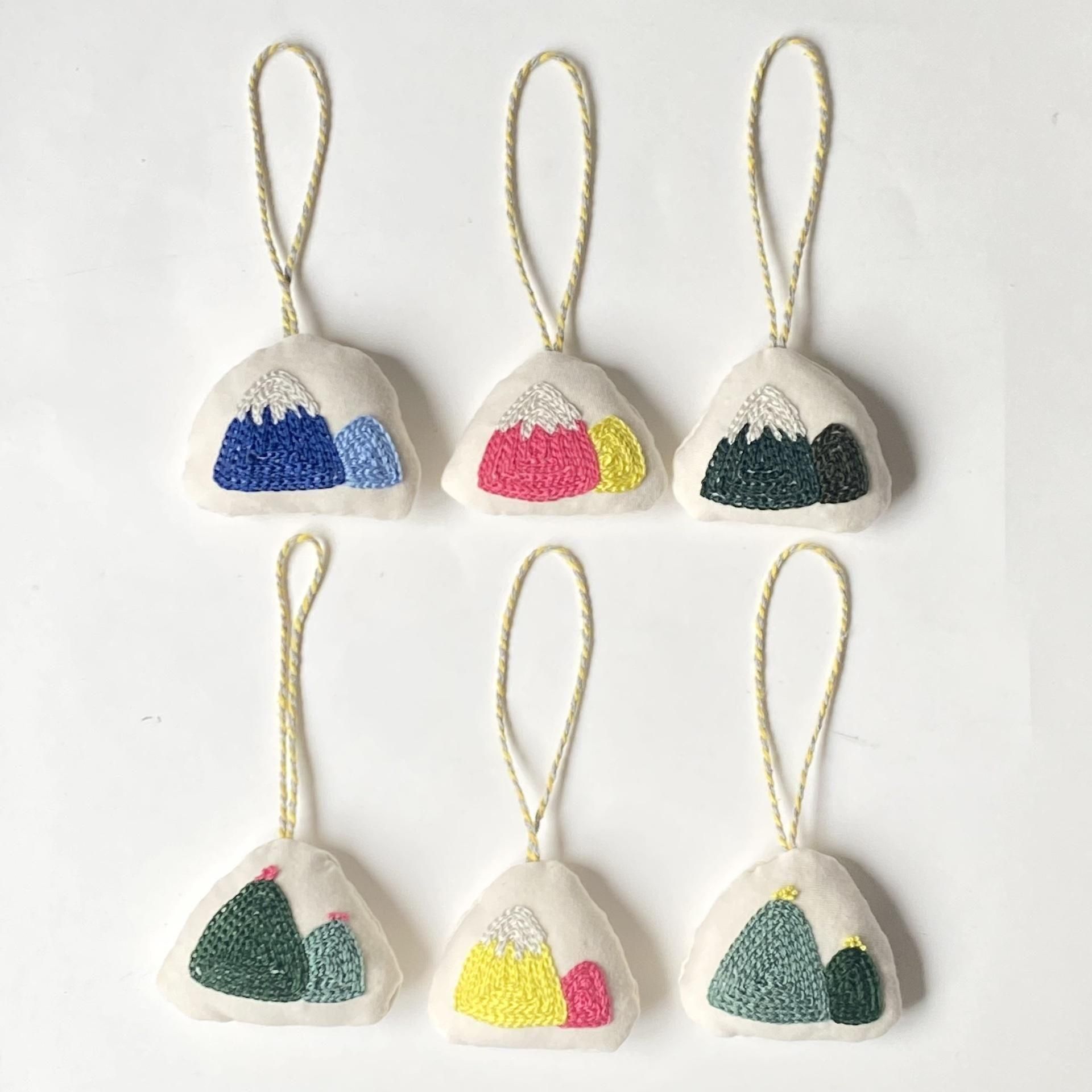 刺繍の布小物を製作しているyoyoyo(ヨヨヨ)さんに作っていただいた、山のオーナメント。